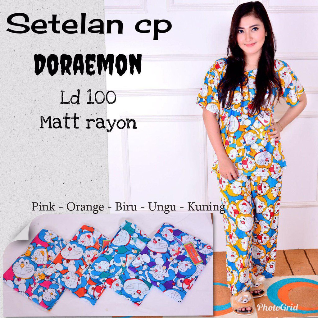 Setelan babydol celana panjang piyama celana panjang lengan pendek, kerah bulat, kancing depan (dada), bahan santung rayon yang adem, menyerap keringan cocok untuk aktifitas santai/kegiatan di rumah.