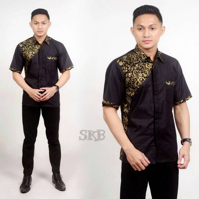 Name: Mall Grosir Kemeja Batik Pria Modern Kombinasi Prada Songket Emas Bunga Bakung Diskon Murah